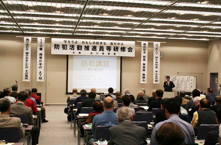 品川区品川警察署管内の防犯協力員の方約120名を対象に侵入窃盗と手口と対策の話をしました。