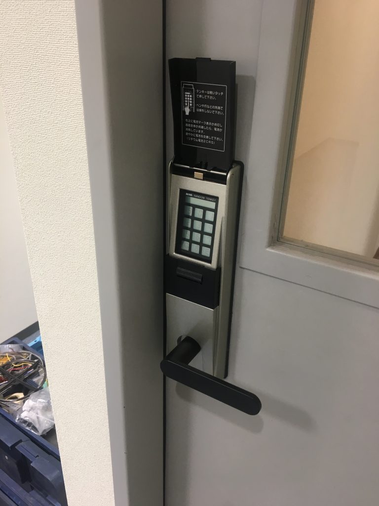 TOP ▸ 日々の実績 ▸ オフィス 電池錠 MIWA TK4L 2018.12.10 オフィス 電池錠 MIWA TK4L オフィスにて一般的なドアノブ錠前から電池式の暗証番号錠にしたいとのご依頼をいただきました。 硝子にあたるか微妙なところでしたが、無事に施工できました。 日々の仕事実績一覧へ戻る