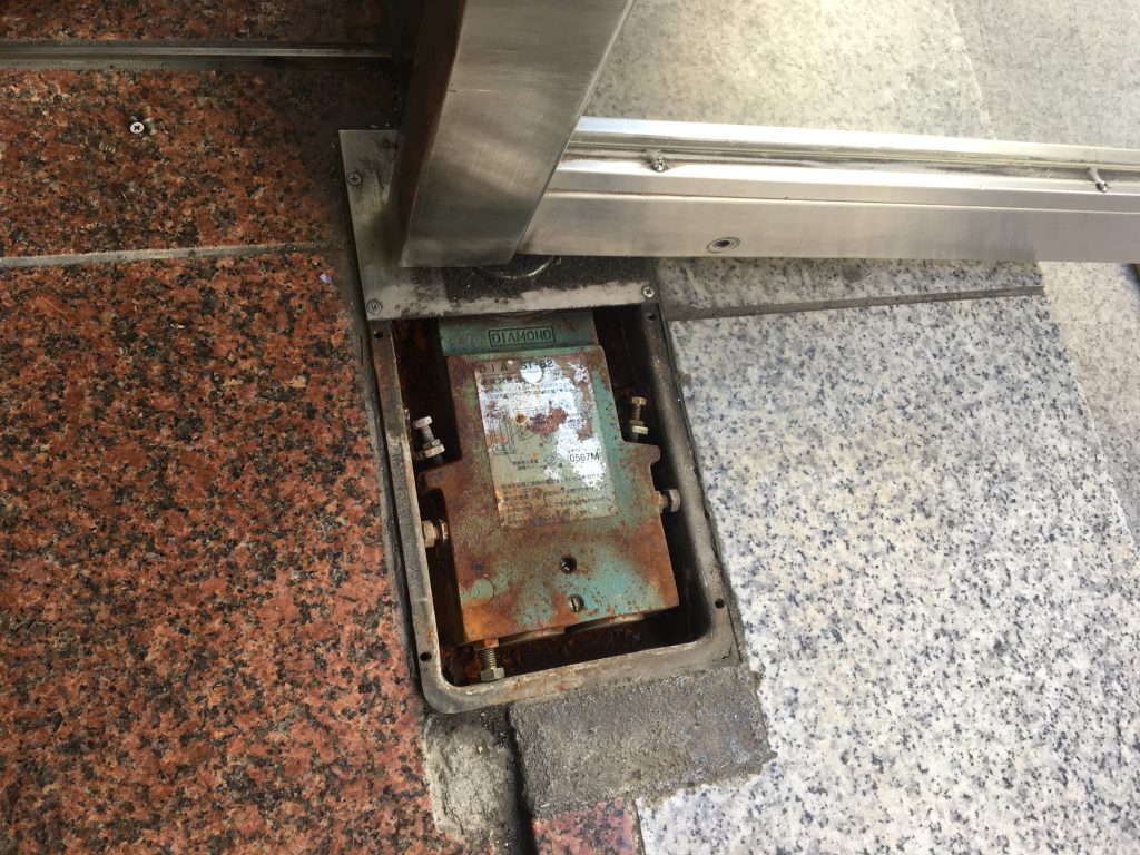TOP ▸ 日々の実績 ▸ ビル入り口 フロアヒンジ交換 DIA 2019.02.27 ビル入り口 フロアヒンジ交換 DIA ビルの入り口の扉が開閉速度が速く、ガラスが割れてしまうのではないかと 心配されご相談いただきました。 フロアヒンジが古くて速度調整できないため交換をお勧めしました。 交換後、速度調整でゆっくり閉まるようになったのでご満足いただけたようです。 日々の仕事実績一覧へ戻る
