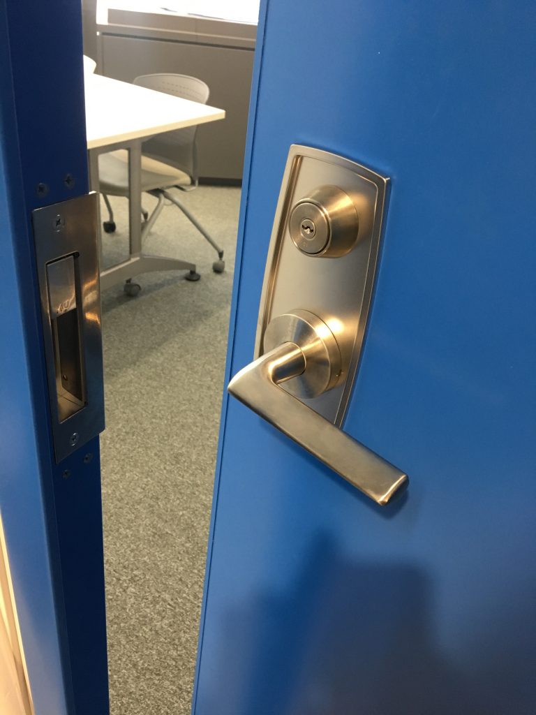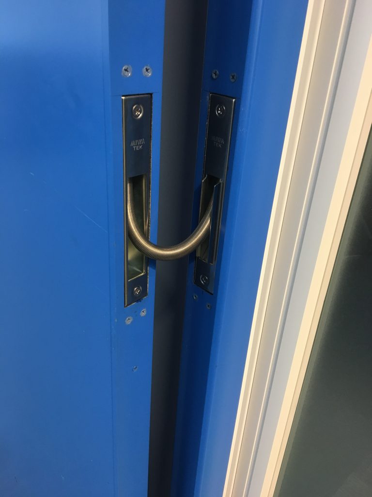 TOP ▸ 日々の実績 ▸ オフィス 入り口 電気錠設置 2019.03.28 オフィス 入り口 電気錠設置 オフィスの入り口に電気錠を設置してきました。 既存パーテーションに設置しましたが 通常、既存扉に通電金具を設置する場合は面付の露出タイプを使用するところ 意匠を気にされていたため、扉が開いていないと見えない埋め込み型を使用しました。 埋め込み型は作業は面付露出タイプに比べ作業が大変です。 日々の仕事実績一覧へ戻る
