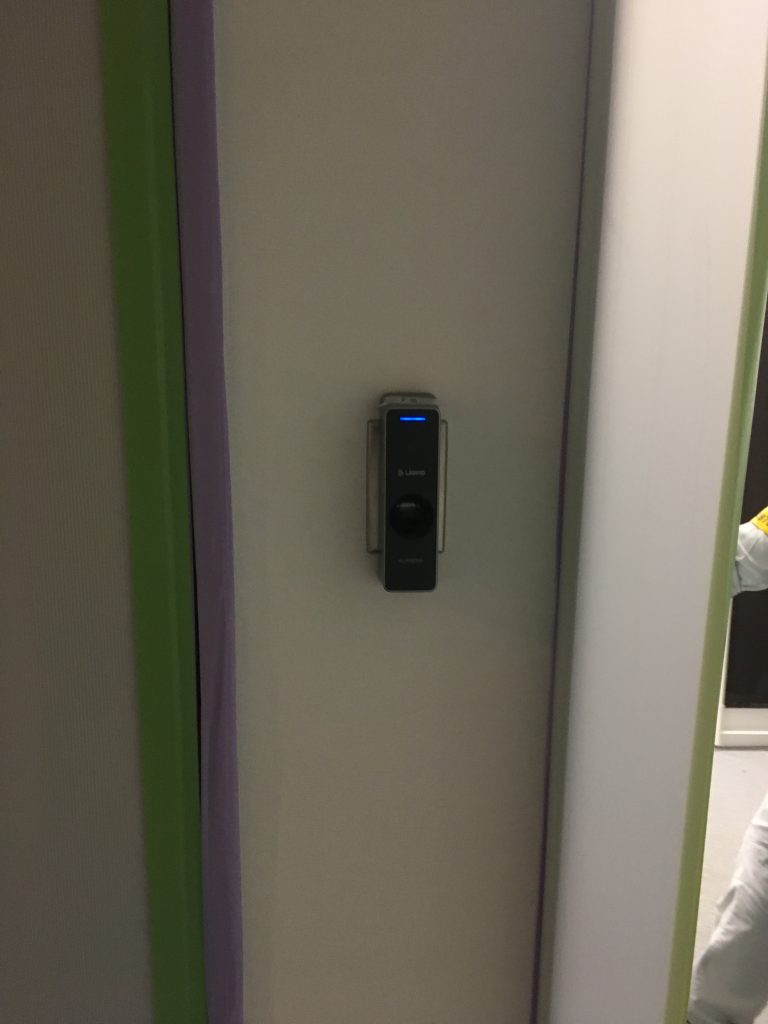 TOP ▸ 日々の実績 ▸ オフィス 入退管理 spax net指紋 2019.07.02 オフィス 入退管理 spax net指紋 オフィスの共用部側扉にspax netの指紋認証機を取り付けました。 以前ビル管理の認証機が付いていた箇所に取付けたので、露出配線とならずに綺麗な仕上がりとなりました。 管理ソフトの設定次第では、マルチパーソン(2人以上認証で解錠)設定も可能です。社外秘スペース(サーバールームや資料室)等への設置がおすすめです。 日々の仕事実績一覧へ戻る