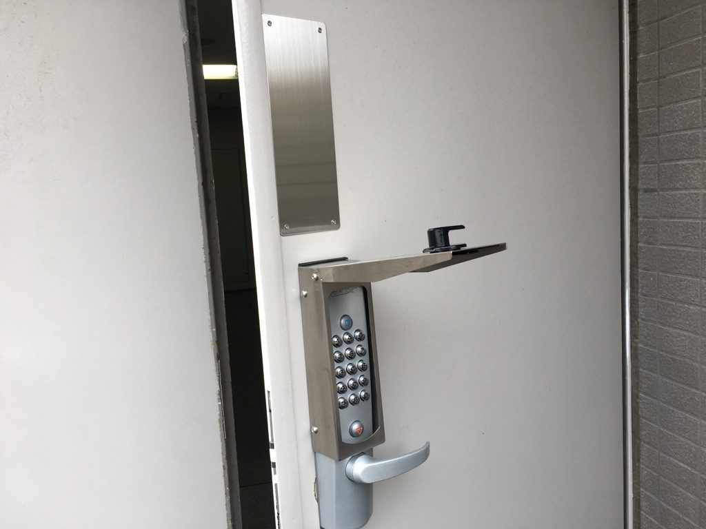 - 某ビル屋外通用口 テンキー式自動施錠錠設置