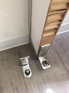 トイレ個室ブースの建付けがおかしくなった為ブースのヒンジ部を交換致しました。