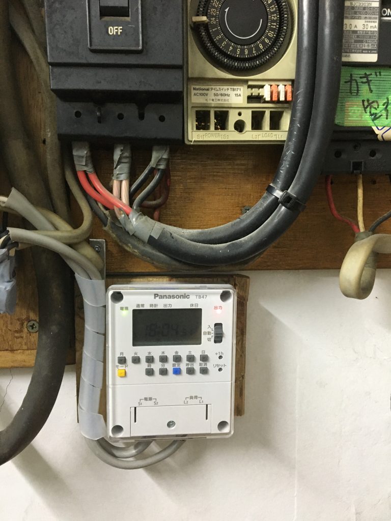 店舗の看板照明用タイマーが壊れてしまったため交換してきました。