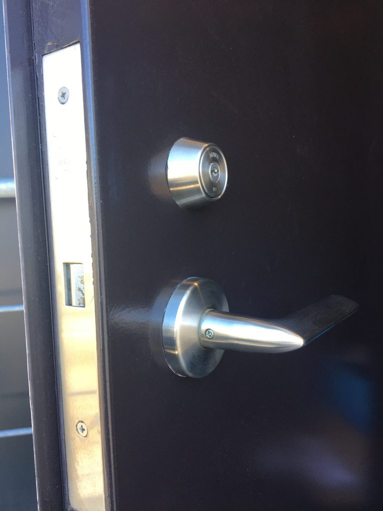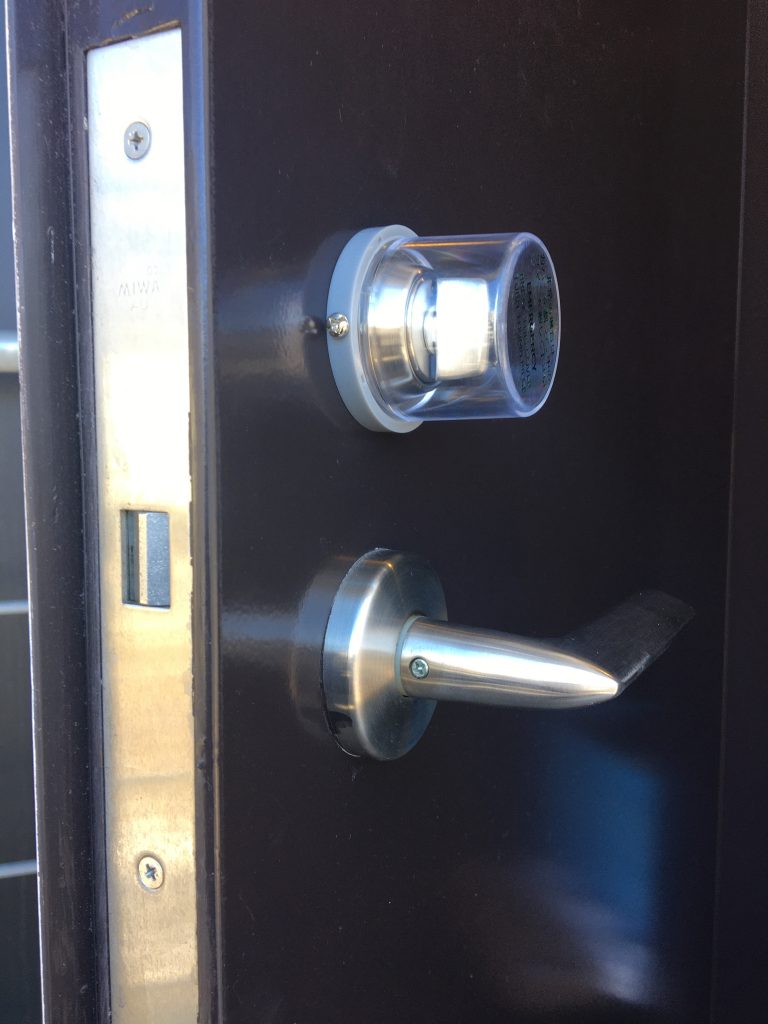 TOP ▸ 日々の実績 ▸ ビル 非常階段 サムターンカバー設置 2020.03.29 ビル 非常階段 サムターンカバー設置 ビルの各階外階段が両面シリンダーになっていて 緊急時に外へ出れないのでサムターンに交換したい というご依頼をいただきました。 非常時以外は使用制限したいとのことでサムターンカバーも 一緒に設置してきました。サムターンカバーは結構割れやすいので 取り扱いに注意が必要です。 日々の仕事実績一覧へ戻る