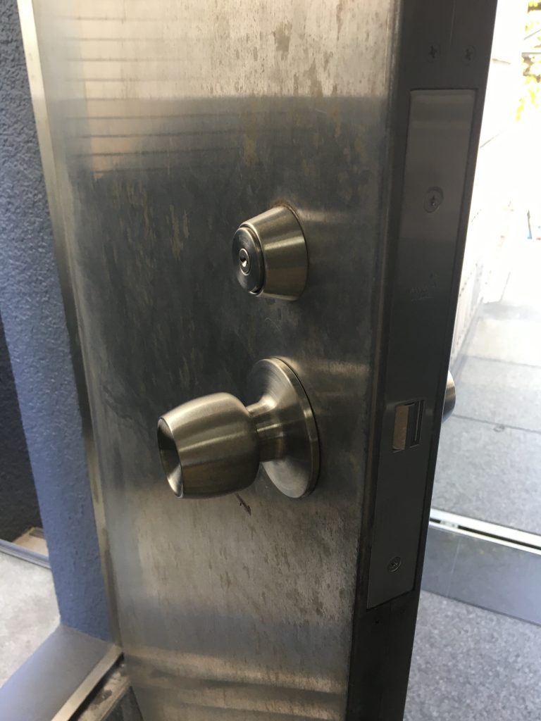 TOP ▸ 日々の実績 ▸ ビル 通用口 電気錠交換(MIWA ALT-HS) 2020.05.20 ビル 通用口 電気錠交換(MIWA ALT-HS) ビルの通用口の電気錠が壊れたので交換してきました。 美和ロックの廃番品 ALシリーズがついていましたので 補修後継品のAL-HSシリーズに交換しました。 ほぼ加工なしで設置できますが、シリンダーは流用できないので 新しい鍵となります。 日々の仕事実績一覧へ戻る