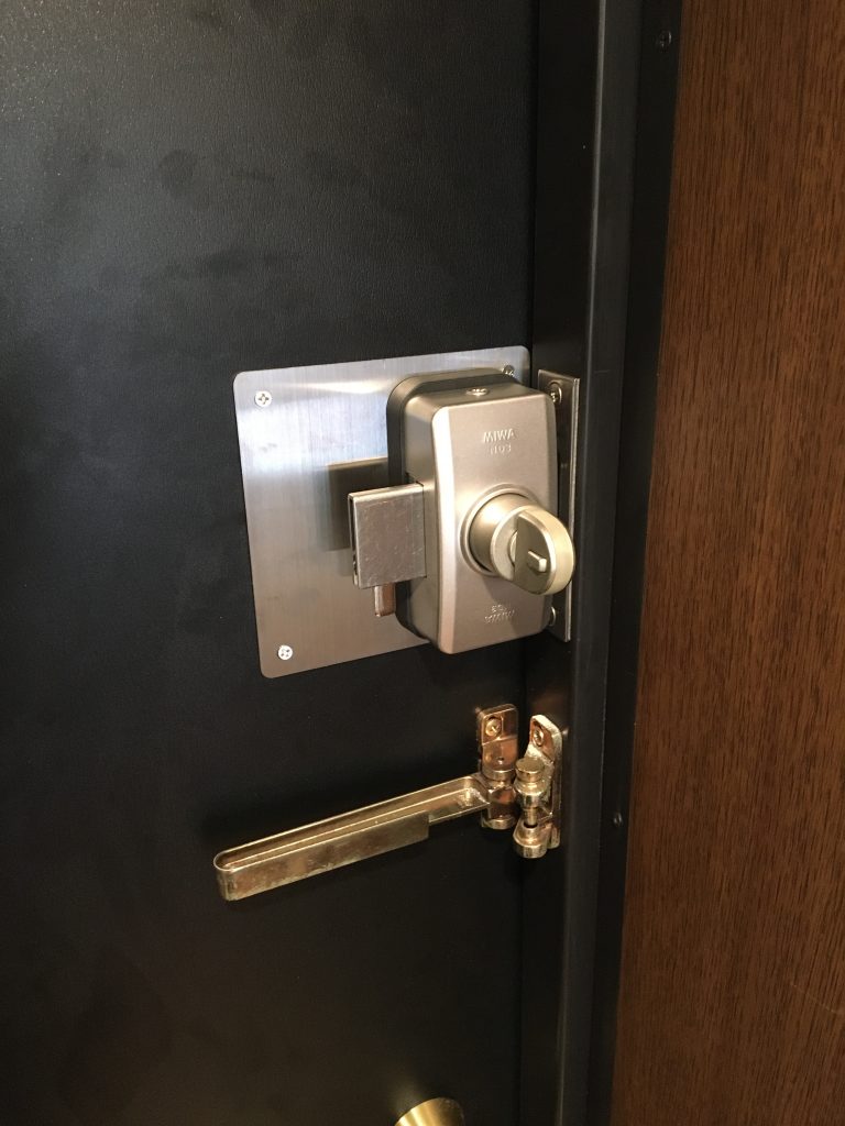 TOP ▸ 日々の実績 ▸ 住宅 玄関 補助錠加工交換(MIWA PRND3R) 2020.06.19 住宅 玄関 補助錠加工交換(MIWA PRND3R) 賃貸住宅の入居者が入れ替わるにあたり鍵交換のご依頼をいただきました。 外国製の補助錠がついており、日本のメーカーの商品では寸法が 大きく変わってしまうため、特注のプレートを作成しておさめてきました。 だいぶ意匠が変わってしまいましたが今後入居者が変わってもすぐ鍵交換が できるのでご納得いただけました。 日々の仕事実績一覧へ戻る