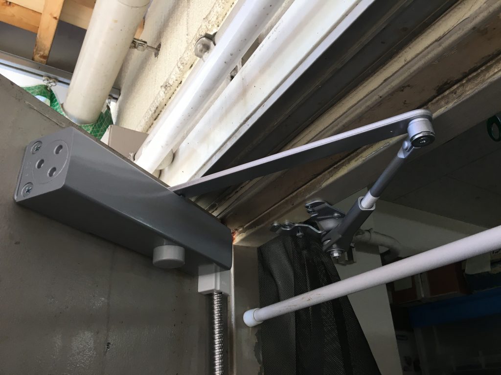 TOP ▸ 日々の実績 ▸ ビル 通用口 ドアクローザー交換(RYOBI) 2020.06.22 ビル 通用口 ドアクローザー交換(RYOBI) ビル通用口のドアクローザーを交換してきました。 電気錠システムリニューアルにともない、扉の開閉に支障があるので ついでに交換してほしいということでした。 特に閉まるときのスピードが速くて、騒音と危険性が指摘されておりましたが RYOBIの万能型に交換してそれらが解消されましたので 喜んでいただけました。 日々の仕事実績一覧へ戻る