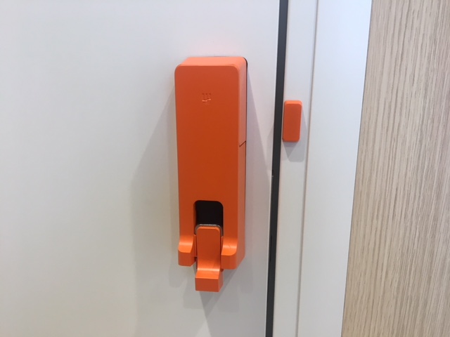 - ビル テナント内パーテーション扉 リモートロック8j施工(オレンジ)