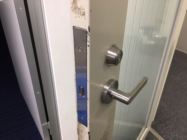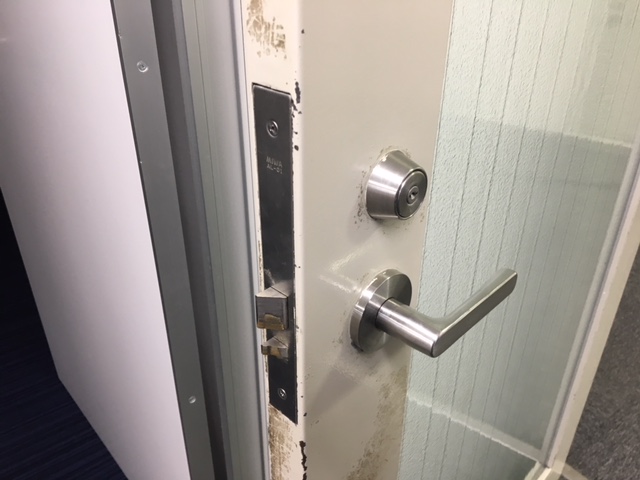 テナント部入口の電気錠がラッチ不良の為、