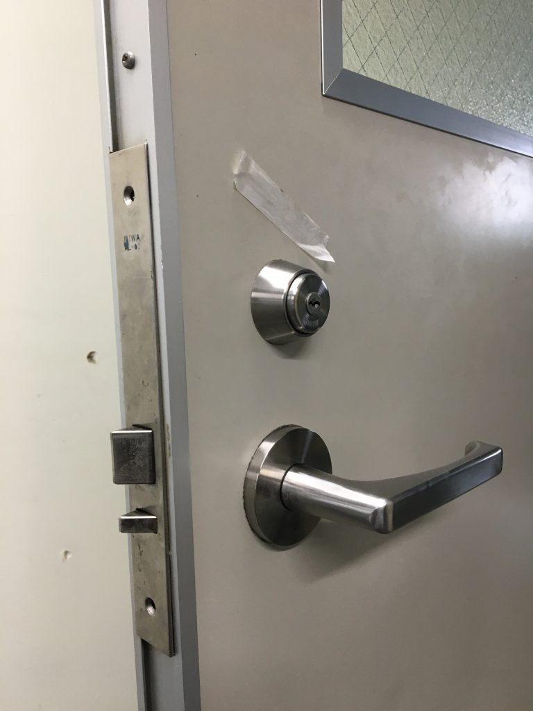 TOP ▸ 日々の実績 ▸ 事務所 入り口 電気錠交換(MIWA ALT-HS) 2020.09.02 事務所 入り口 電気錠交換(MIWA ALT-HS) 事務所入り口の電気錠が調子悪いので交換してほしいという御依頼をいただきました。 MIWAのALTという廃番商品がついていたため、ALT-HSという廃番補修品に交換しました。 シリンダーはそのまま流用できるので「鍵が変わらずによかった」とおっしゃっていただけました。 日々の仕事実績一覧へ戻る