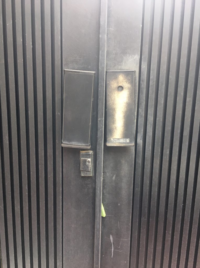ドアの交換を検討したが、数十万掛かることが分かり、費用をそれ程掛けないで、施錠できるようにしたいとの事でした。