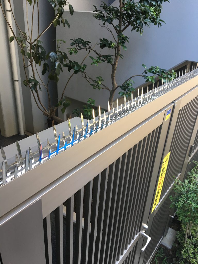 TOP ▸ 日々の実績 ▸ マンション 門扉 忍び返し設置 2020.09.18 マンション 門扉 忍び返し設置 マンションの管理会社より、裏の門扉を乗り越えて不法侵入する者がいるので 乗り越えられないようにしてほしいという御依頼をいただきました。 門扉全体に忍び返しという防犯金具を一面に設置して容易に乗り越えられないようにしました。 ちなみに不法侵入の様子は防犯カメラにバッチリ映っていましたので やはりこのご時世、防犯カメラの設置は必須事項です。 日々の仕事実績一覧へ戻る