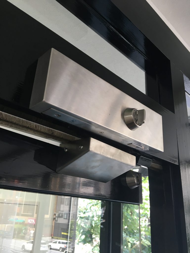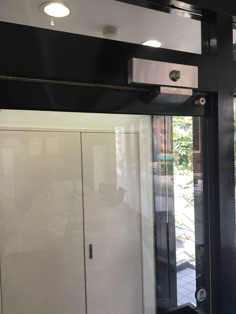 TOP ▸ 日々の実績 ▸ ビル 入口 電気錠設置(MIWA AL3M) 2020.09.18 ビル 入口 電気錠設置(MIWA AL3M) ビルの入り口を電気錠化したいという御依頼をいただき設置してきました。 強化ガラス扉で通常の設置の仕方ができなかったので 面付ボックスという金具を使用して納めました。 シリンダーは設置しませんでしたが他にも出入口があるため 停電や故障時にはそちらから入れるようになっています。 日々の仕事実績一覧へ戻る