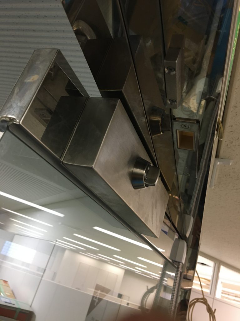 TOP ▸ 日々の実績 ▸ テナント 出入口 電気錠設置(MIWA AL3M) 2020.10.26 テナント 出入口 電気錠設置(MIWA AL3M) テナント入り口に電気錠を設置したいという御依頼をいただきました。 強化ガラス扉なので錠種、設置方法が限られてしまいますが 今回はMIWAのAL3Mというモーター錠を面付BOXというものを使用して 納めてきました。 本体側は問題ないのですが受け側がステンレスなので加工に苦労しました。 日々の仕事実績一覧へ戻る