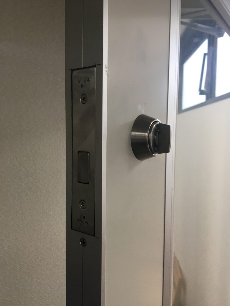 TOP ▸ 日々の実績 ▸ 児童施設 間仕切り 補助錠取り付け 2020.12.24 児童施設 間仕切り 補助錠取り付け 児童施設の間仕切り扉に補助錠を設置してきました。 小さな子供が勝手に行き来することを防ぐためのようです。 子供が手の届かない高い位置に設置して、大人は内外どちらからでも 簡単に施解錠できるように両面サムターンにしています。 日々の仕事実績一覧へ戻る