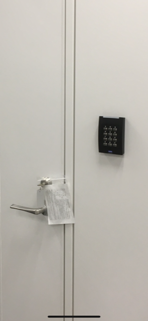 今回はオフィスに電気式テンキー錠を付けさせていただきました。