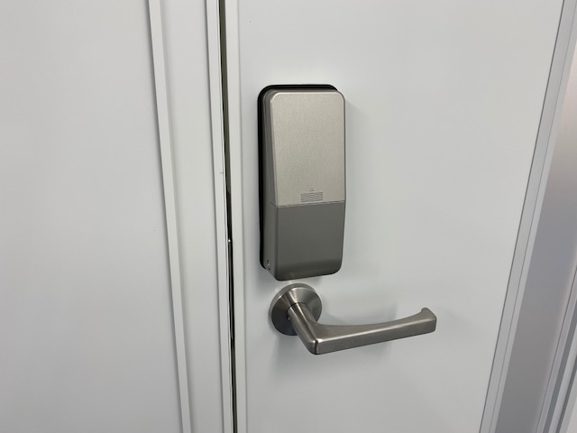 オフィスの新規パーテーション扉にテンキー錠を設置いたしました。
