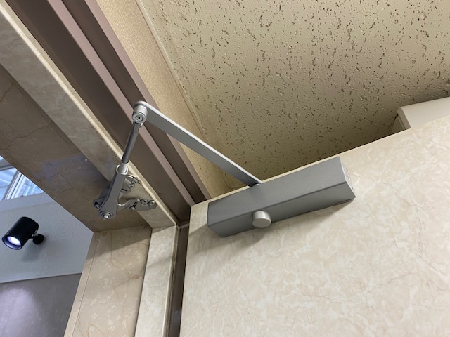 TOP ▸ 日々の実績 ▸ ビル トイレ扉 ドアクローザー交換 2021.05.21 ビル トイレ扉 ドアクローザー交換 ビル、トイレ扉のドアクローザーが、 油漏れの為、スピード調整が出来ず、勢いよく閉まる状態でした。 ドアクローザーは油圧で動いており、 内部の油が漏れてしまうと、修理対応が難しく、 交換が必要となります。 写真のような油もれの場合は、 扉や床面等が油で汚れてしまうケースも多いです。 このような症状が確認できた場合は、早急に交換をお勧めいたします。 日々の仕事実績一覧へ戻る
