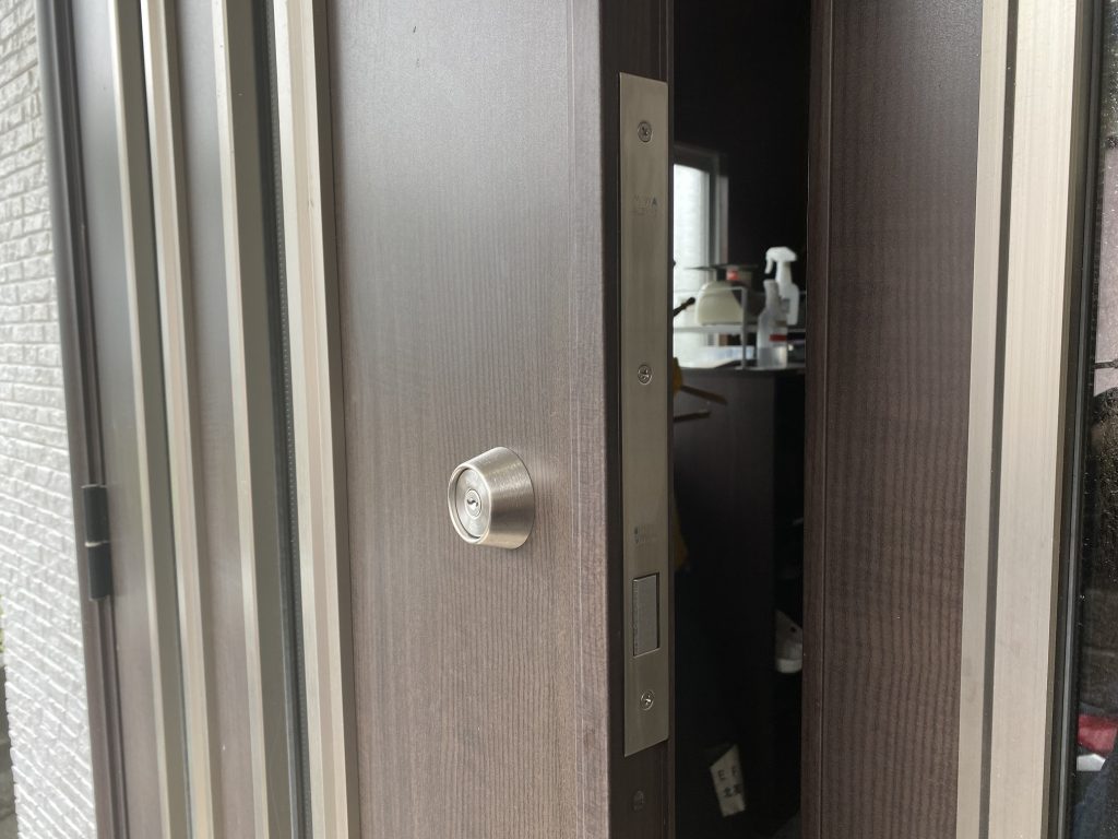 TOP ▸ 日々の実績 ▸ 戸建て住宅 玄関 電気錠設置(MIWA AL3M) 2021.05.26 戸建て住宅 玄関 電気錠設置(MIWA AL3M) 戸建て住宅に電気錠を施工してきました。 軽量スチールという材質で、普通の鉄扉よりも 鉄の厚さが薄いので逆に施工が難しいのです。 扉の中も不燃材などが入っていて空洞ではないので 扉内通線も少しやっかいです。 が、特にトラブルもなくスムーズに施工完了です。 日々の仕事実績一覧へ戻る