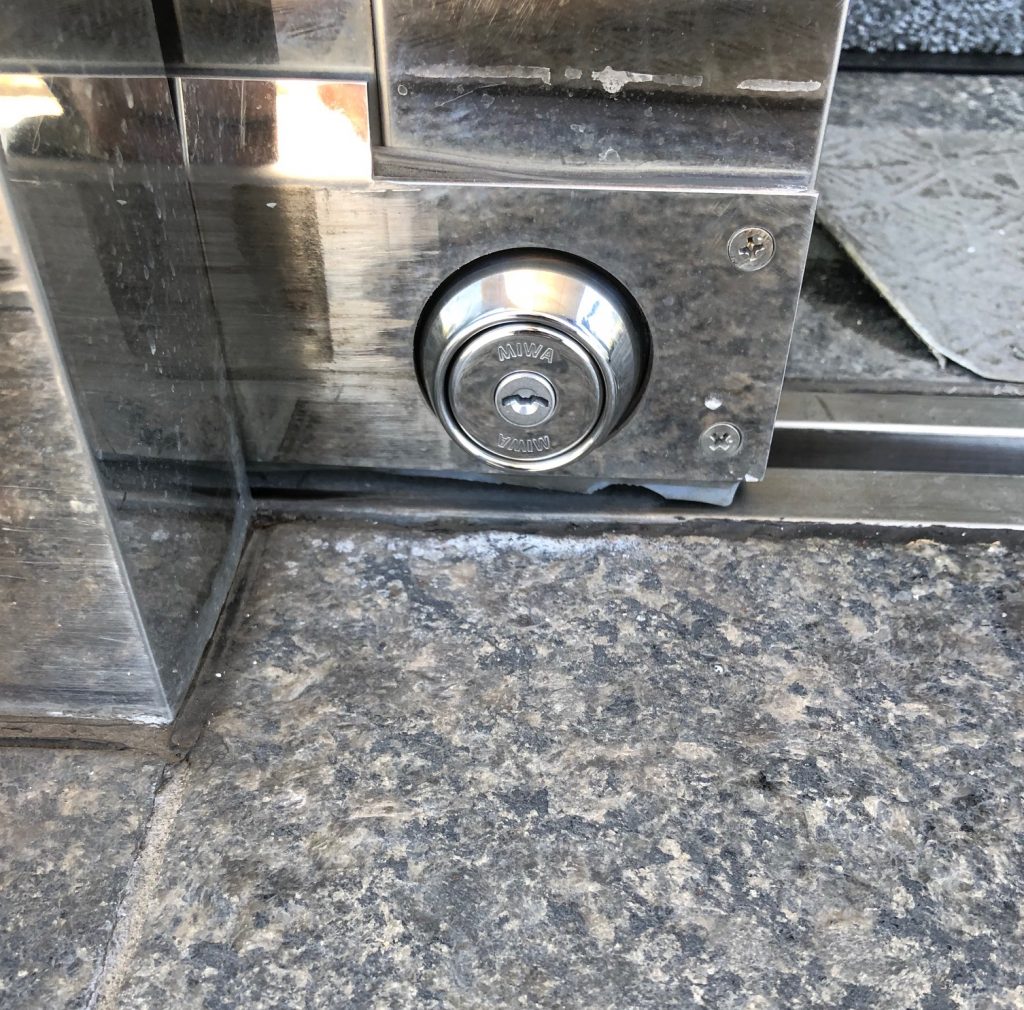 TOP ▸ 日々の実績 ▸ ビル 入口自動ドア下 錠前交換 2021.11.19 ビル 入口自動ドア下 錠前交換 ビル自動ドア下の鍵が回らないとのご依頼を頂きました。 錠前の劣化によって鍵が回らなかった為、自動ドアを脱着し、 錠前一式を交換致しました。 自動ドア下の鍵交換も当社で対応可能です。 お気軽にお問い合わせください。 日々の仕事実績一覧へ戻る