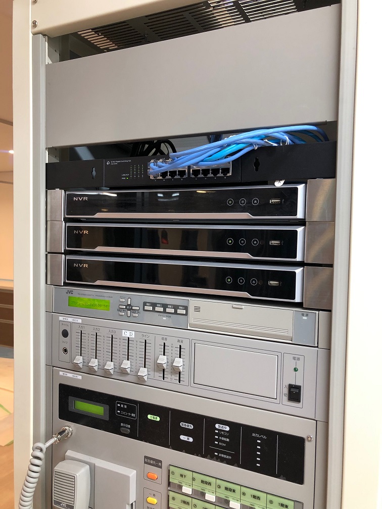 TOP ▸ 日々の実績 ▸ 施設 防犯カメラレコーダー モニター 2022.02.25 施設 防犯カメラレコーダー モニター 施設に防犯カメラを導入した際、ラック内にレコーダーを収めたいとのご希望でした。ラック内に棚板を置くのではなくラックにマウントする形で固定しました。 モニターはラック上に3個並べて壁掛金具で固定してあります。高い位置に固定するのは大変でしたが、画質も綺麗で見やすく喜んで頂けました。 日々の仕事実績一覧へ戻る