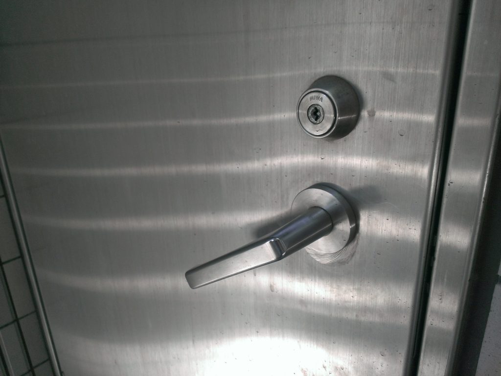 TOP ▸ 日々の実績 ▸ ビル 通用口 レバーハンドル不良 2017.05.30 ビル 通用口 レバーハンドル不良 ビルの通用口、レバーハンドルが下がったまま戻らない状態。 確認したところ、レバーの破損がみられました。 レバーハンドルの交換を行いました。 日々の仕事実績一覧へ戻る