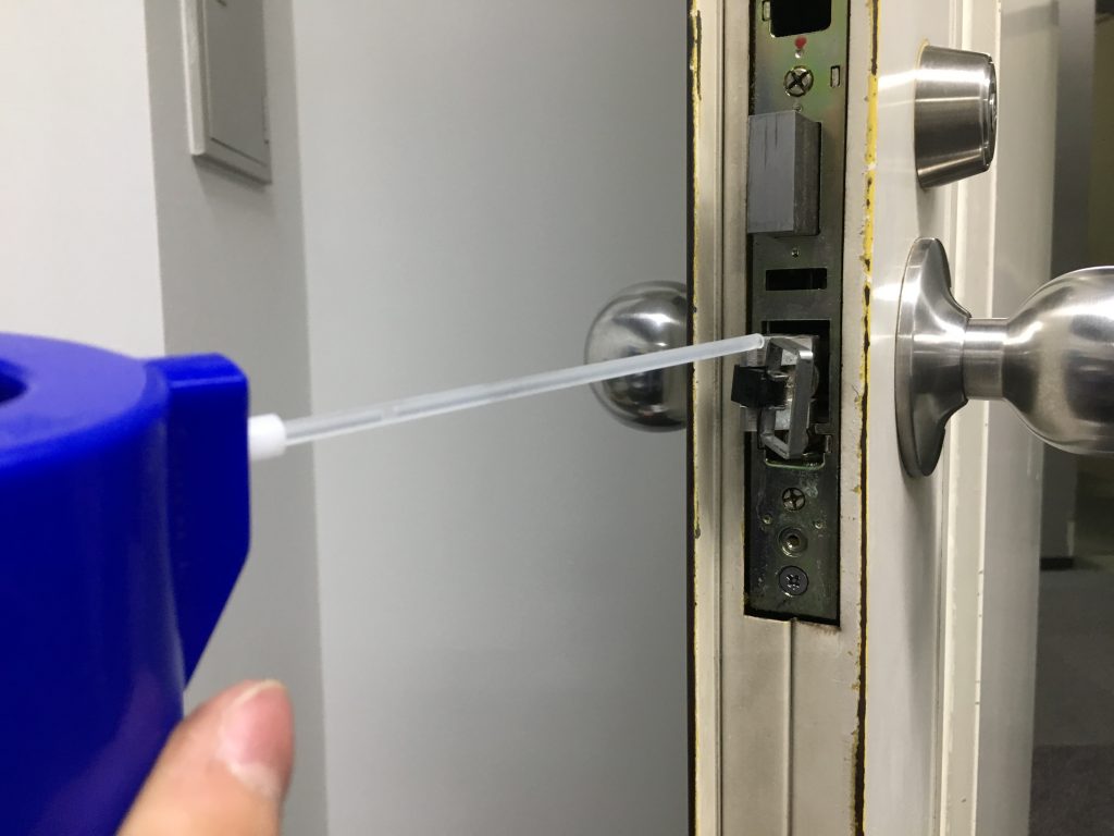TOP ▸ 日々の実績 ▸ 事務所 入口扉 錠前修理 2017.06.17 事務所 入口扉 錠前修理 事務所の入口扉についている錠前施錠不良。 ラッチボルト、ケース本体を洗浄し専用の油を注油することで動きがスムーズになりました。 日々の仕事実績一覧へ戻る